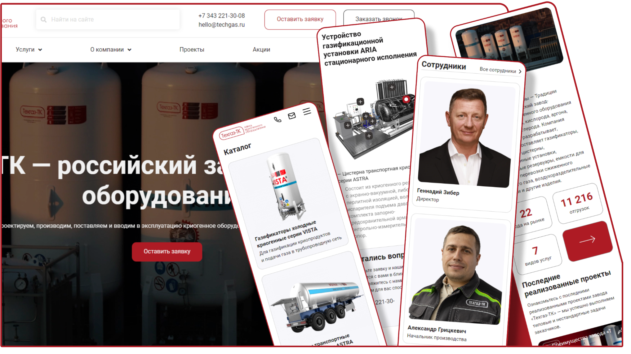 Дополнительно развивали сайты и каналы по продаже баллонов и газов. Верстали посадочные страницы.